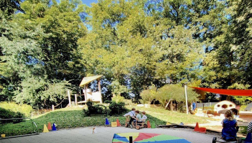 Der Kindergarten befindet sich im Stadtteil Oberföhring in unmittelbarer Nähe zum Englischen Garten und der Isar. Unseren Garten nutzen wir bei jedem Wetter – und kein Kind geht jemals sauber nach Hause.